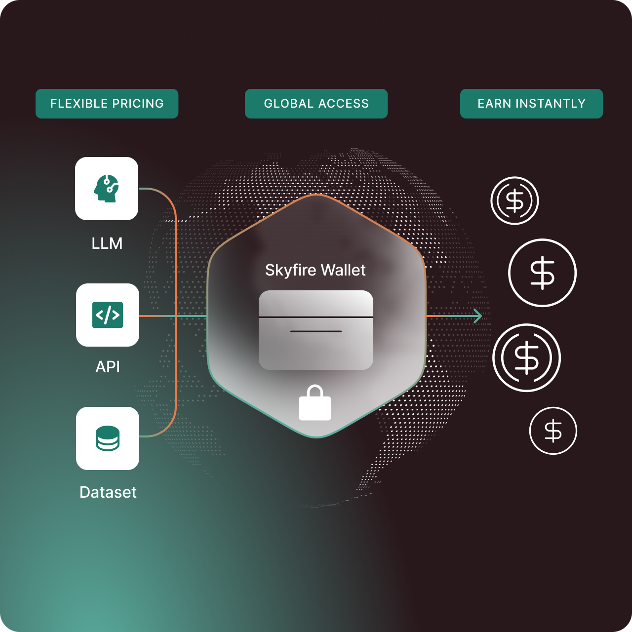 Unlock new revenue streams by selling access to your LLMs, datasets, and APIs. Reach AI agents globally and expand your business effortlessly.